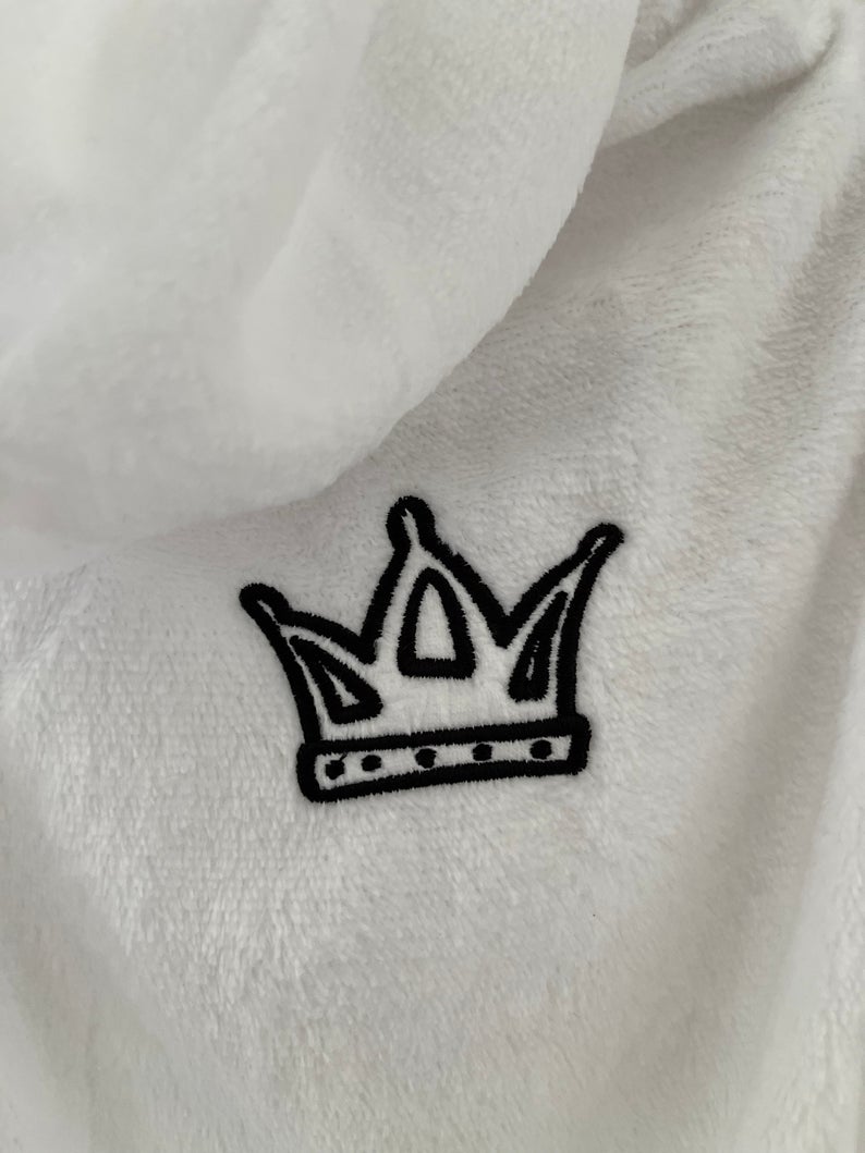 Beautiful bathrobe with a hood. You have the option to embroider your pet’s name on the back of the robe!