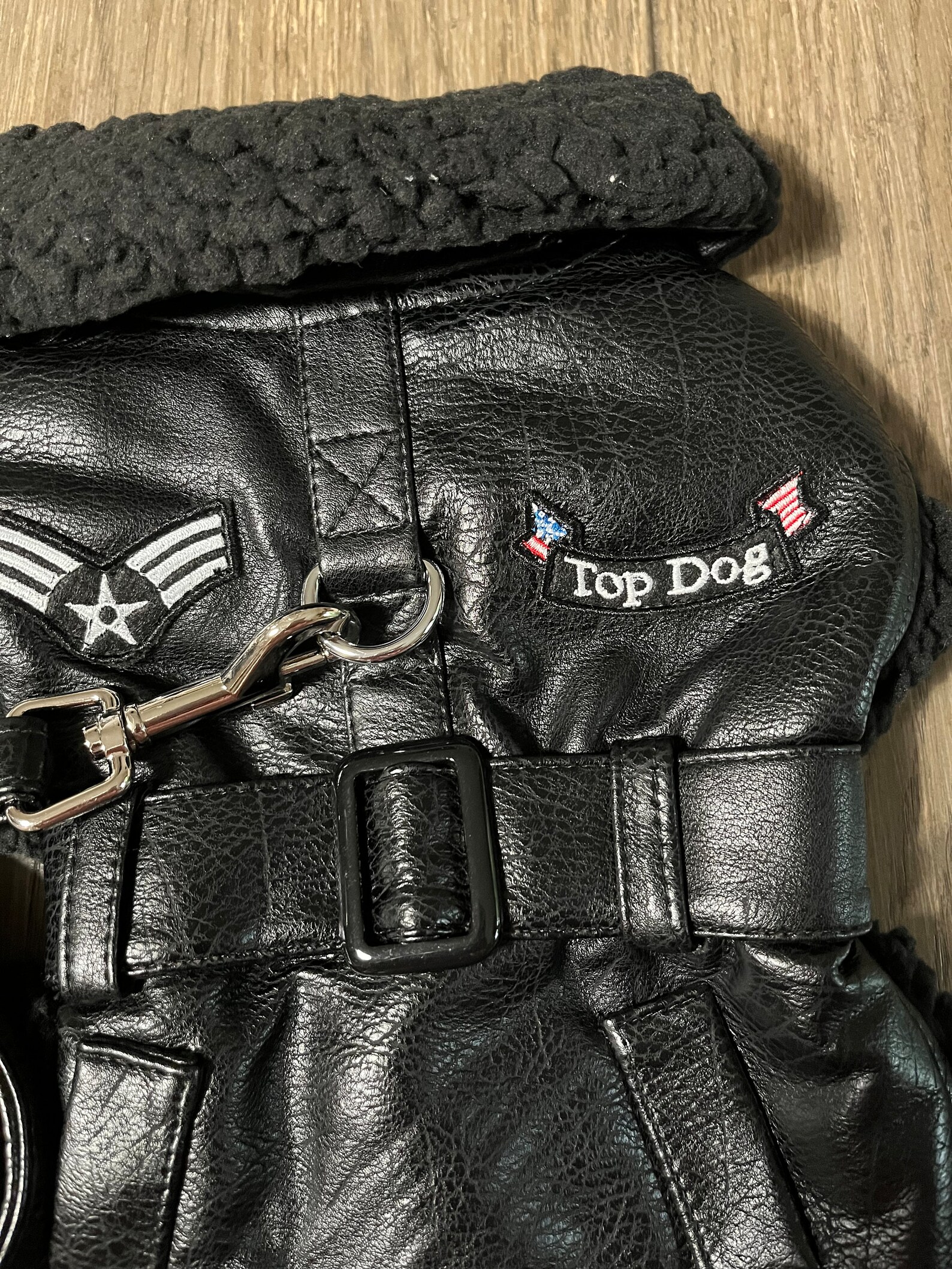 Make your pet stand out with this luxurious faux leather jacket, designed for both style and comfort. Featuring a soft faux sherpa collar and lining, this jacket keeps your furry friend warm while adding a touch of vintage charm.